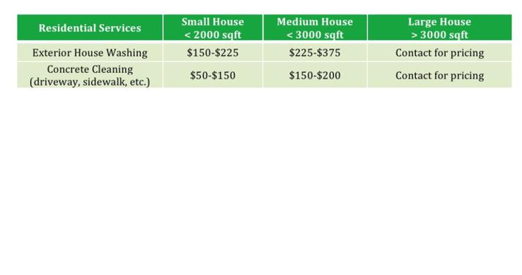 House up to 1800 sq ft. Prices vary based on square footage, height and degree of soiling. We sanitize the exterior surfaces using a biodegradable cleaning solution to get rid of dirt and grime. Around 1.5l water for dry steam, nearly no water can be seen on the bround. Get free estimates from pressure cleaning experts in your city.