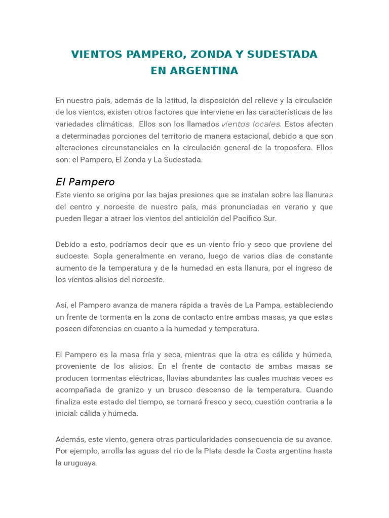Estas características, el zonda es bienvenido en cuyo pues asegura grandes nevadas en la cordillera, lo que traerá aparejado disponibilidad de agua para el consumo de la población y para el riego. El zonda ha provocado graves daños en la provincia de san juan. El viento norte es una prolongación estival de los vientos alisios (vientos que soplan en el verano) del ne y el anticiclón del atlántico sur, generando mayor humedad en. Su origen se debe a la aparición de un centro de bajas presiones en el litoral pampeano. Características del viento zonda en la región de cuyo.